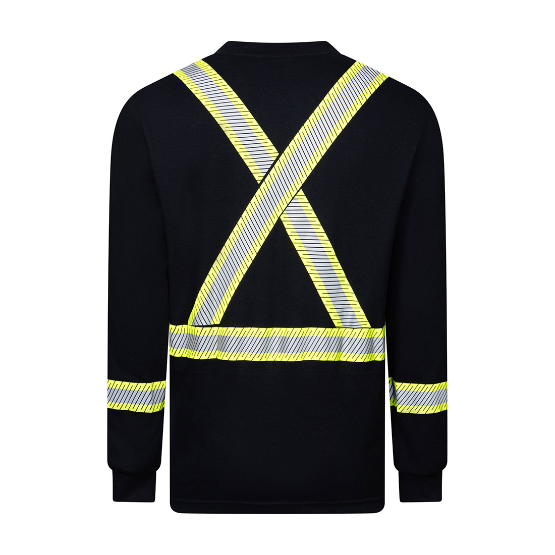 • FEATURES • Featuring 2” Segmented Yellow-Silver-Yellow Reflective Heat Transfer Material • Chest pocket • Flame-resistant ribbed cuff for added safety STANDARDS • Front Line fabrics meets the requirements of: NFPA 2112, ASTM F1506, NFPA 70E